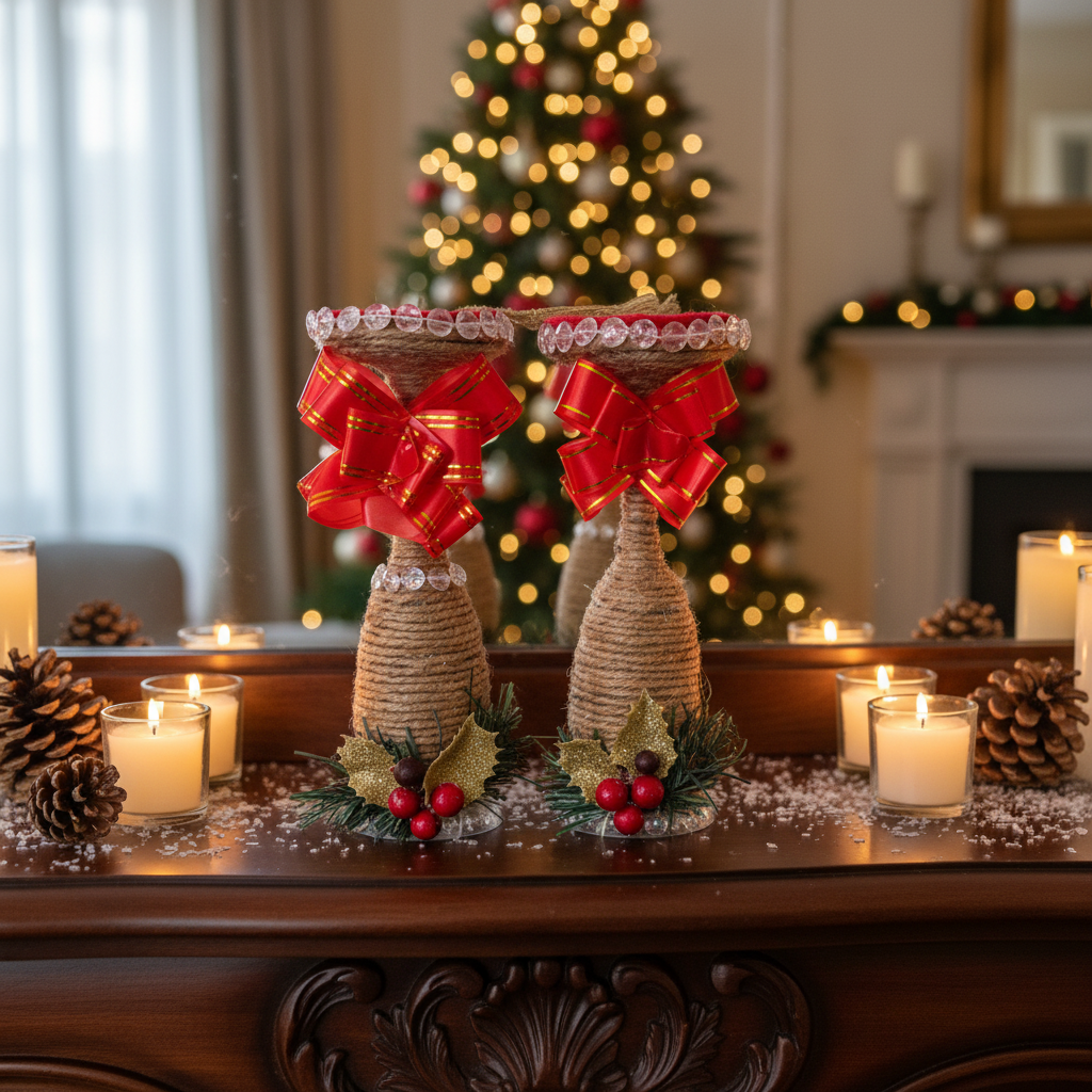 Handmade champagne glass centerpiece